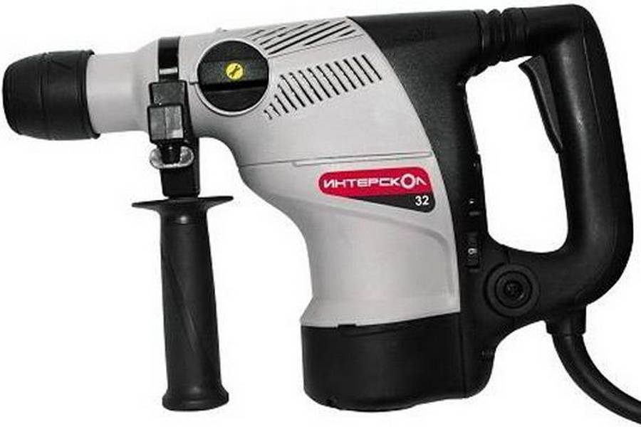 Отечественный перфоратор с вертикально установленным мотором. Это облегчает конструкцию и позволяет вместить все узлы в меньший корпус. В итоге, Интерсколу удалось сделать полупрофессиональный аппарат весом меньше 6 кг.