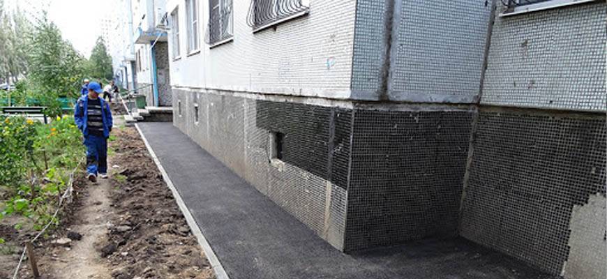 Асфальтобетонную отмостку преимущественно делают вокруг многоквартирных домов.