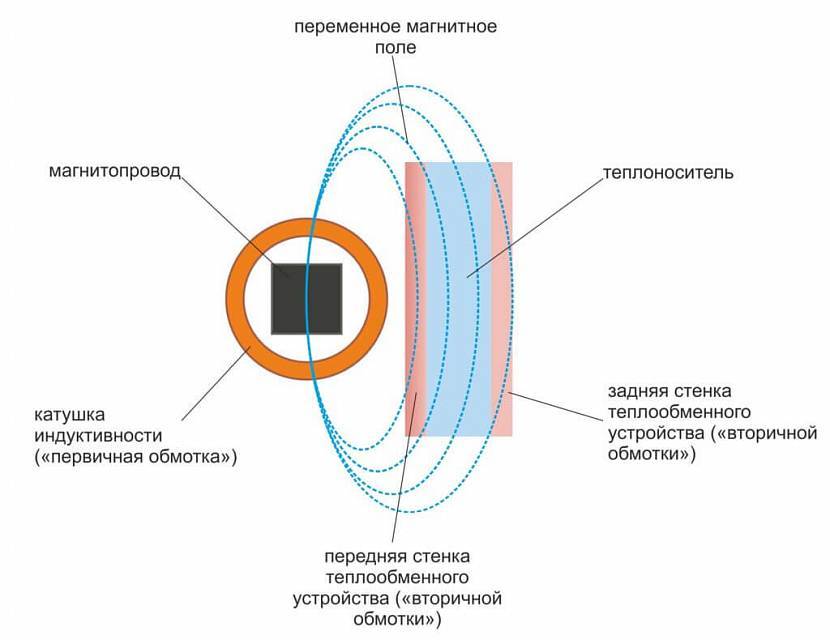 Индукционные котлы появились для бытовых систем отопления относительно недавно. Их принцип действия заключается в свойстве металлов нагреваться под воздействием переменного магнитного поля. Сам нагревательный элемент представляет собой индуктивную катушку с сердечником из ферромагнитного сплава, через «вторичную обмотку» которой проходит теплоноситель.