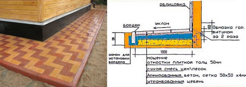 отмостку должны составлять подстилка (из щебня, гравия) и бетонное покрытие.