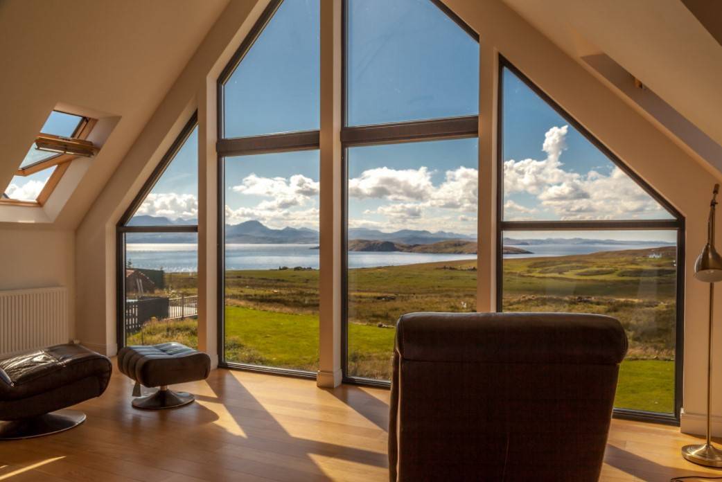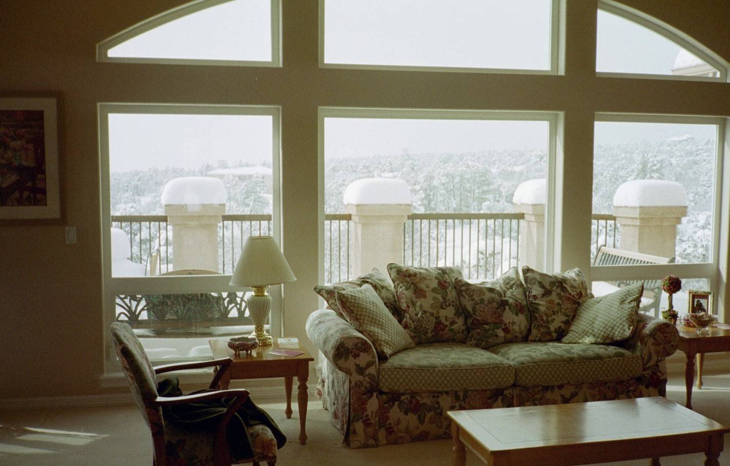 Теплопроводность одного стекла выше, чем стены, поэтому в холодных регионах понадобятся окна с тремя стеклами и двумя камерами. Панорамные окна делаются из высокопрочных материалов и хорошо выдерживают и распределяют нагрузку. При желании извне и снаружи стекла покрываются защитными слоями, предотвращающими образование царапин. Большие окна долго моются, однако они покрываются дефектами реже, чем стены. Летом оконные проемы придется держать закрытыми от палящего солнца по много часов в день. Зимой понадобится регулярно убирать обледенение.