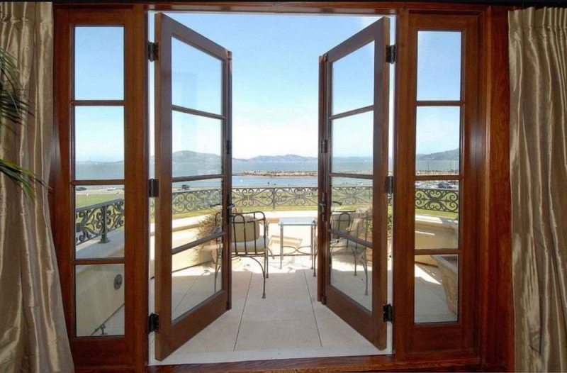 Французские «окна». По сути, представляют стеклянные двери, оснащенные сдвижным или штульповым механизмом. Французский декор используется для остекления первых этажей особняков. Им обустраивают выход на веранду, в зимний сад, бассейн. При монтаже на верхних этажах снаружи обязательно устанавливают защитное ограждение, имитирующее балконные поручни.