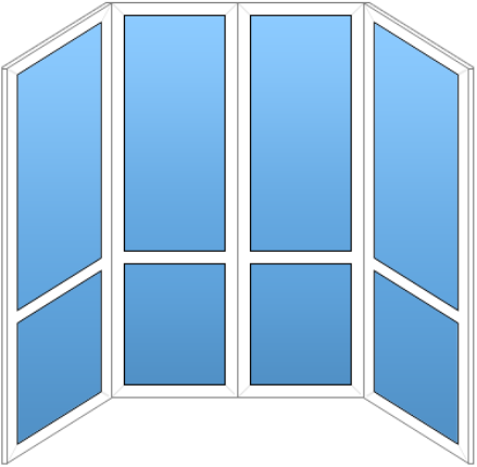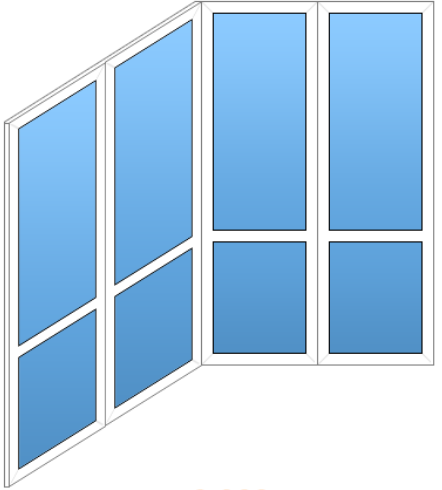 Угловые конфигурации. Самая сложная в монтировании разновидность оконных элементов. Предполагает размещение стекол на стыке двух сторон фасада. Подходит для зданий с высокими потолками. Обычно по ребру угла возводят колону или оставляют часть стены для прочности, разграничения стеклопакетов. Помимо сложности монтажа, угловые композиции дают существенную теплопотерю. Обустраивая такой воздушный интерьер, придется обеспокоиться о дополнительном подогреве.