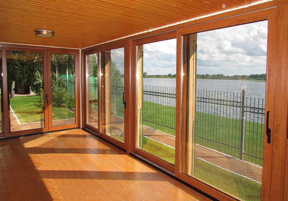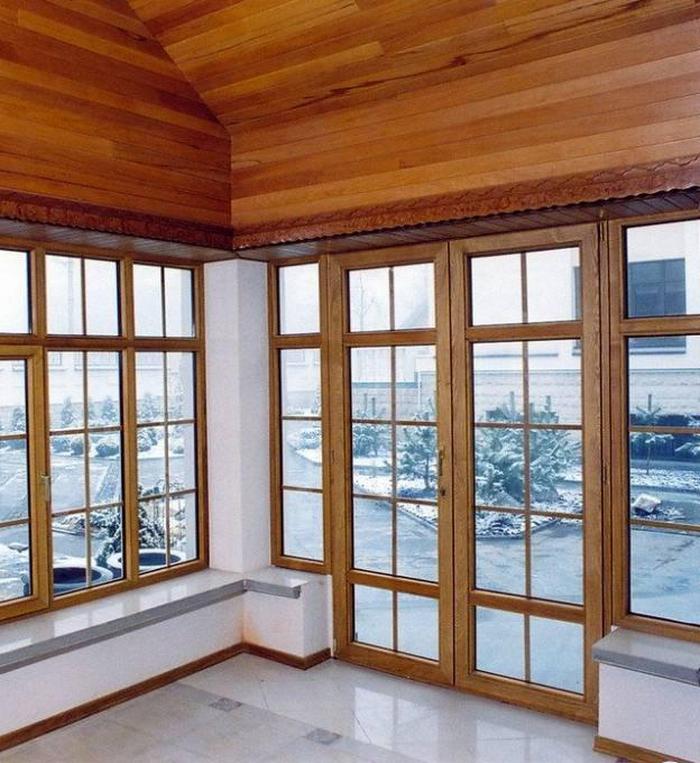 Деревянные конструкции встречаются в панорамном остеклении реже, чем в других материалах. Причина в высокой стоимости, небольшом числе производителей и сложности производства, по сравнению с другими системами больших недостатков.