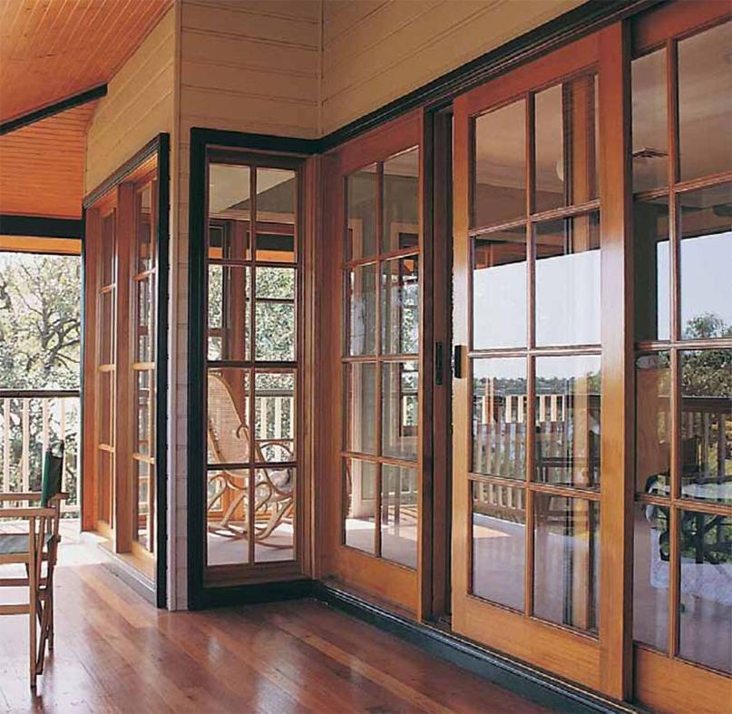 Наиболее дорогой разновидностью является вариант, выполненный из дорогих пород дерева: дуба, лиственницы или сосны. Главным его плюсом является то, что сохраняется вероятность проникновения вовнутрь свежего воздуха извне даже с закрытыми створками. Этот уникальный процесс происходит благодаря порам, которыми так богата древесина.