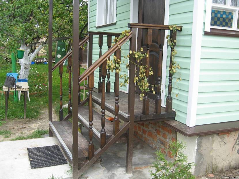 Можно добавить к деревянному крыльцу сопутствующие материалы, из которых иногда делают перилла или ступени.