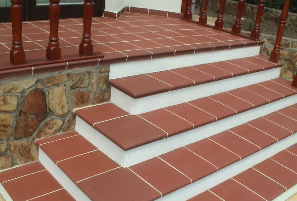 Клинкерная плитка морозоустойчива, не истирается под действием реагентов и очистки от снега. Материал может имитировать кирпичную кладку. Плитка может иметь закругленный край, который отлично подходит для отделки ступенек.