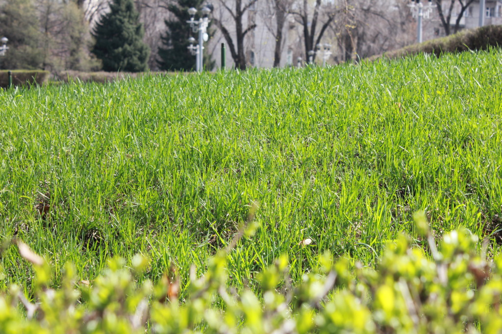 Семена очень любят выклевывать птицы. Поэтому, если есть возможность, накройте посевы сеткой, тканью или пленкой — до укоренения и прорастания травы. Молодые злаки всходят не слишком равномерно, но это потом можно исправить подсевом. Когда наша травка выросла на 5-8 см – делаем первую стрижку! В дальнейшем эту процедуру будем проводить регулярно, с весны до осени.