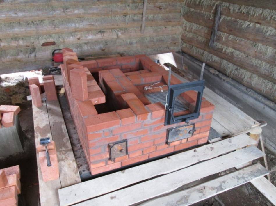 Кроме того, планировать строительство надо с самого начала — кирпичная печь нуждается в собственном фундаменте, не соединенном с основанием бани. Изготовление опорной конструкции в уже действующем помещении представляет собой слишком сложную процедуру, поэтому, надо выполнять работы параллельно с основным строительством.
