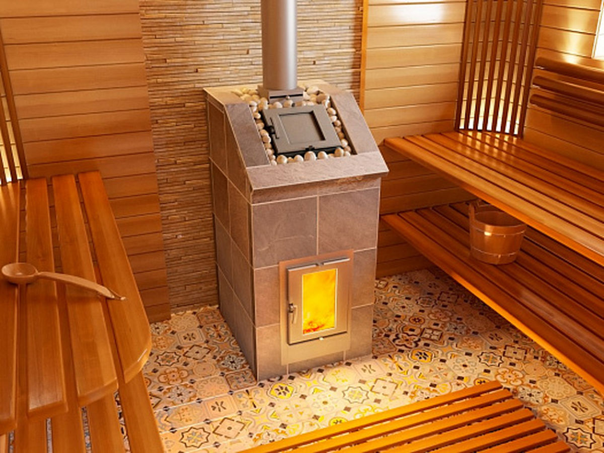 Популярная дровяная печь с системой двойного парообразования, которая дает много легкого пара.