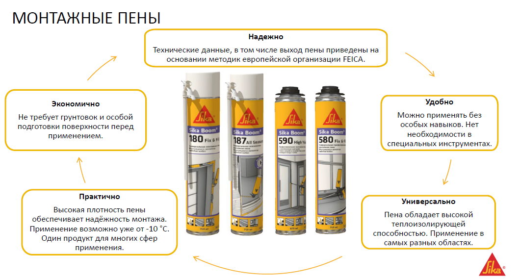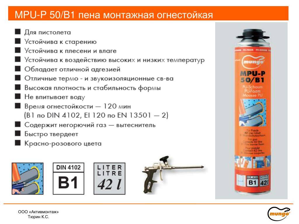 При выборе обратите внимание, с какими материалами пена имеет сцепление. Огнестойкость