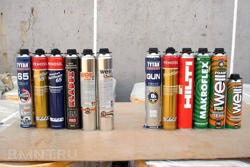 Есть пять наиболее распространённых марок монтажной пены: Момент-Монтаж, Makroflex, Soudal, Penosil и Titan.