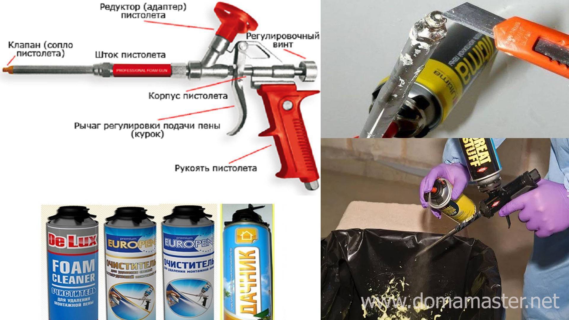 Есть варианты многоразового исполнения, для которых требуется дополнительное устройство – пистолет. С его помощью можно регулировать количество выдавливаемого вещества, благодаря чему химический состав расходуется довольно умеренно. Один баллон может быть многоразовым, однако после каждого применения пистолет необходимо промывать.