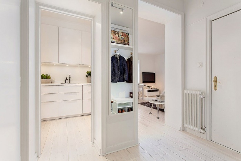 Для шкафа с верхней одеждой тут места практически не остаётся, поэтому нужно выбрать хотя бы такой вариант, где можно разместить всю обувь. А куртки и пальто придётся вешать в комнате, вместе с повседневной одеждой.
