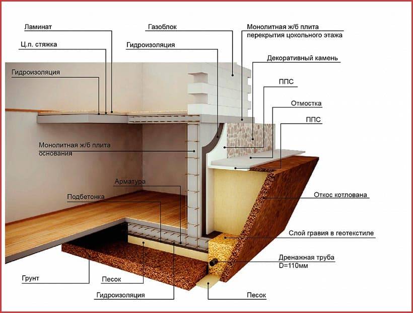 Ниже представлена подробная инструкция, как построить цокольный этаж дома.