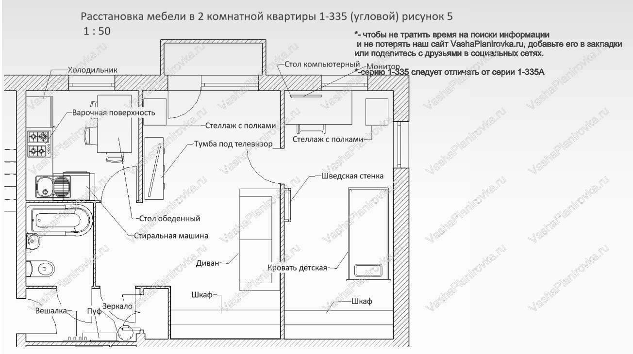 Расстановка мебели в хрущевке серии i-335
