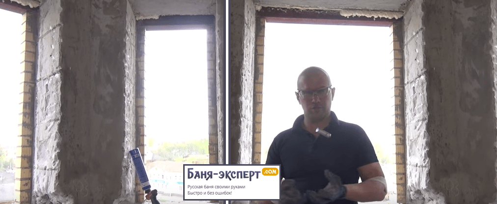 Если баня кирпичная, то вначале в оконном проеме (точнее, в верхней его части) необходимо сбить штукатурку и откосы. Это требуется для того чтобы выяснить, присутствует ли в проеме притолока либо же участок несущей стены расположен непосредственно на оконной обсаде; подобная «халтура» строителей встречается достаточно часто. В отсутствие притолоки выполнение дальнейших работ невозможно, т. к. потребуется помощь опытных специалистов в исправлении дефекта. Более того, даже находиться в таком здании опасно.