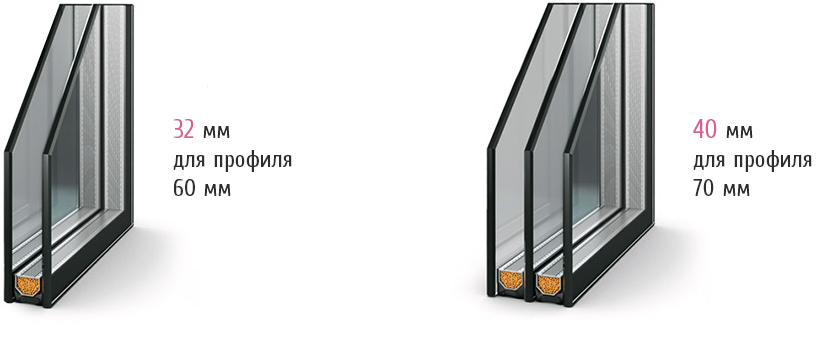 При выборе подходящего варианта следует обратить внимание на посадочную глубину стеклопакета, которая должна составлять не менее 15-18 мм. При меньшем размере стекла будут быстрее запотевать и промерзать. Большинство фирм-производителей выпускают стеклопакеты, толщиной 24, 26 или 32 мм