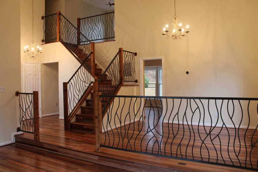 - Высокая стойкость к воздействию внешних факторов, кованые перила в стиле можерн подходят для монтажа как на улице, так и внутри помещения.