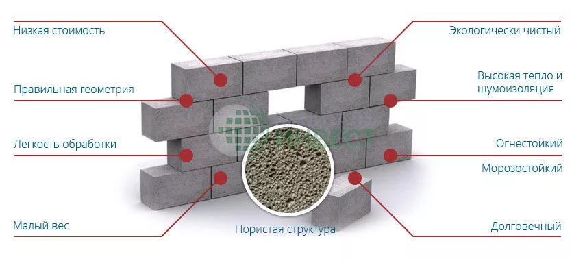 Ячейки наделяют изделия сравнительно малым весом и высокой способностью к теплосохранению. Их количество и процентное соотношение по отношению к объему изделий, определяет прочность и плотность материала.