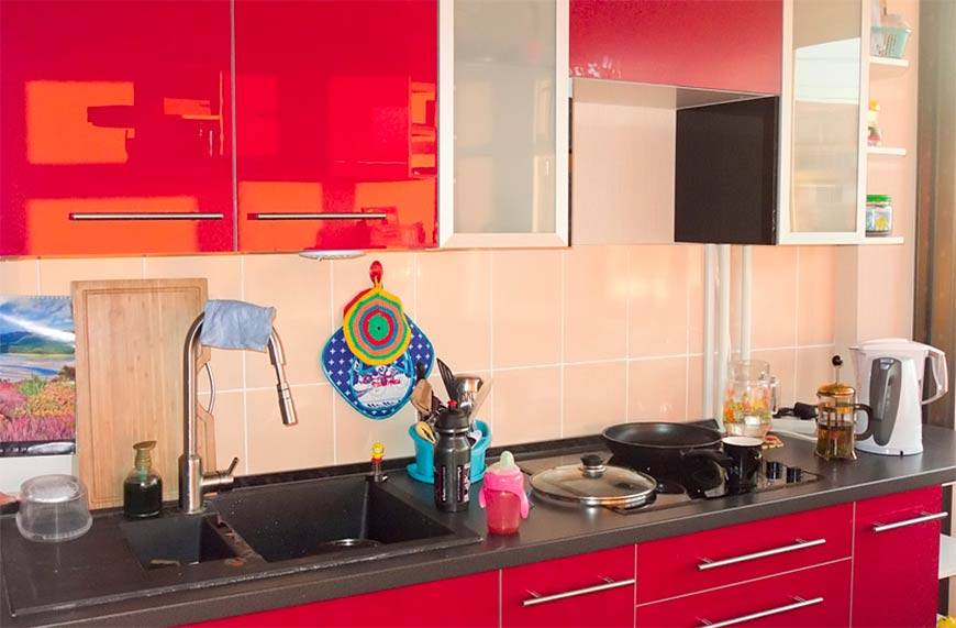- однотипность гарнитура, можно преобразить с помощью различных аксессуаров фурнитурой для шкафчиков и необычной комплектацией;