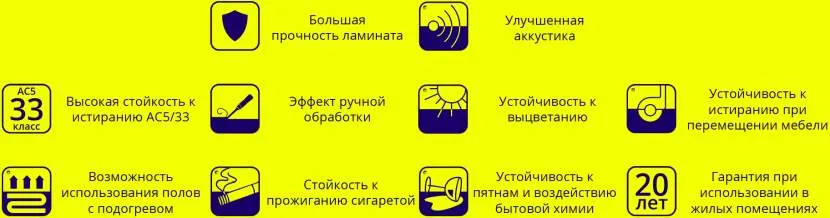 Чтобы выбрать самый лучший ламинат для дома, нужно смотреть на его характеристики, большинство из которых указано на упаковке в виде значков-пиктограмм.