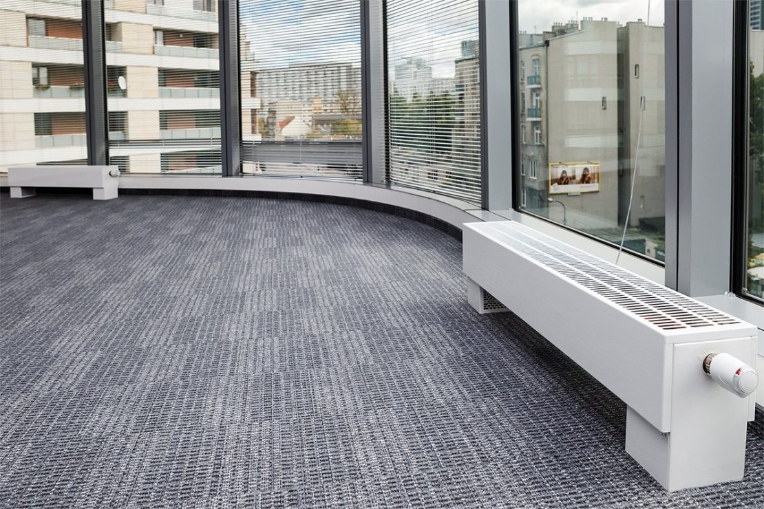 - В-тертьих, внутрипольные конвекторы — относительно маломощный отопительный прибор. В большинстве случаев их оказывается не достаточно для полноценного обогрева всего помещения. Решением может быть использование конвекторов с принудительной конвекцией, снабженных тангенциальными вентиляторами, но это не только увеличивает общую стоимость оборудования и монтажа, но также и отрицательно сказывается на комфорте внутри помещения: постоянный небольшой шум от работы вентиляторов, мелкая дисперсионная пыль в воздухе и т. д.