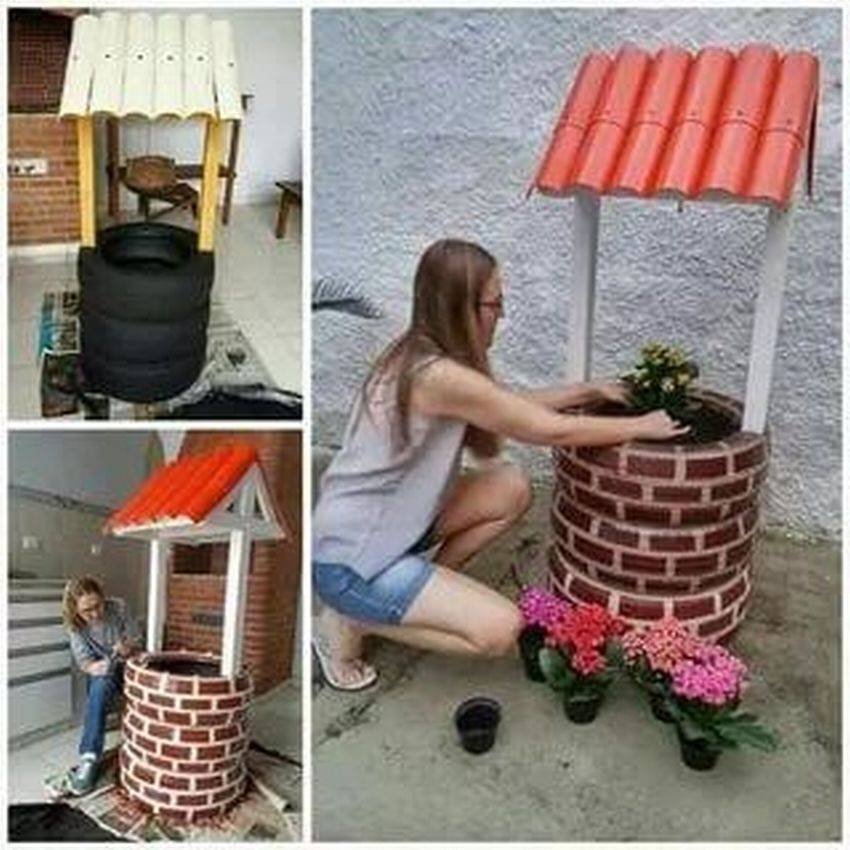 Простая поделка, казалось бы, а цветник в виде колодца всегда украсит приусадебный участок.