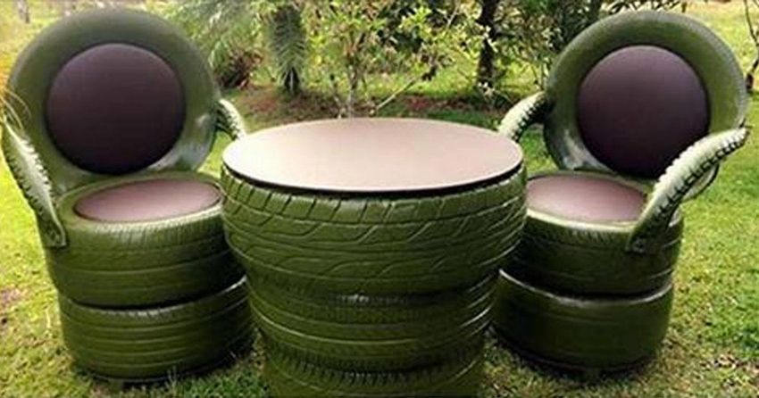 Обтянутые автопокрышки подарили новую жизнь вышедшим из пользования предметам.