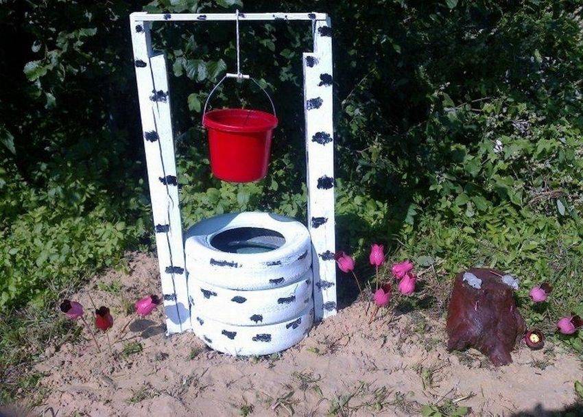 Колодец из покрышек своими руками (декоративный) -10 фото