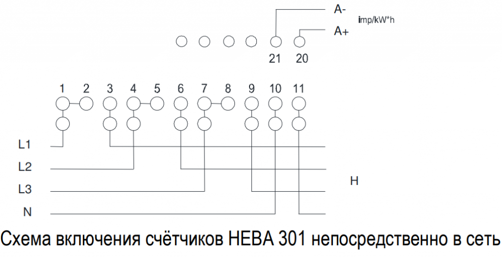 Схема включения счётчиков НЕВА 301 непосредственно в сеть