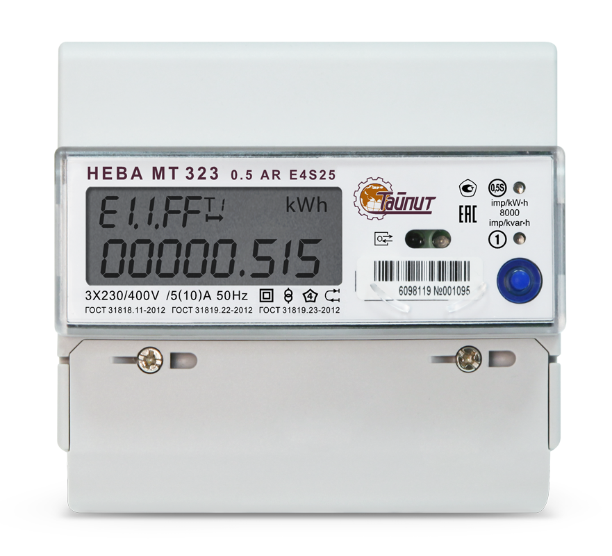 Трехфазный многотарифный счётчик НЕВА МТ 323 0.5 AR E4S25