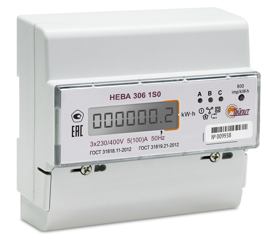 Трехфазный однотарифный счётчик НЕВА 306 1S0 230V 5(60) А