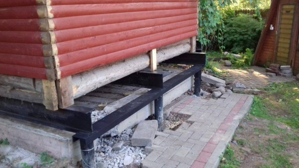 - Замещение венцов, с помощью поднимания постройки, домкратами. Это самый используемый метод, при добавлении или замене фундамента. Он позволяет достаточно быстро и качественно, производить подобного рода работы.