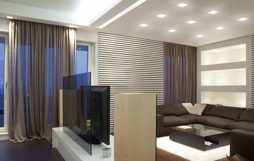Если перенести принципы архитектурного света в интерьер, то легко избавиться от люстр, торшеров. Метод состоит из трех уровней: