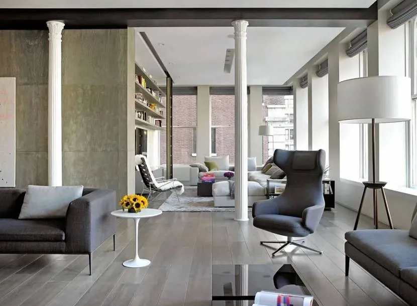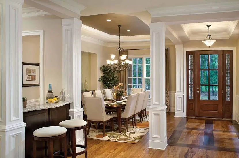 С помощью сооружений можно выгодно выделить интересные участки комнаты. Существует несколько стилей, которые удачно вписывают в себя колонны и вносят в интерьер особый колорит.