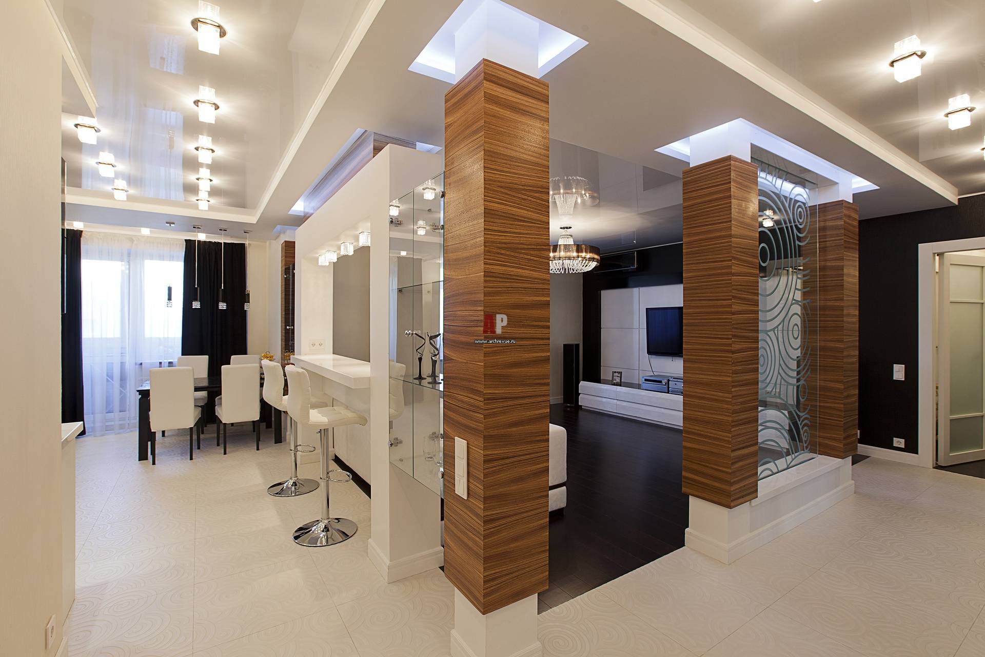 Колонны часто используют в больших помещениях для разграничения пространства на несколько зон. В зависимости от предназначения они могут быть различной формы и размеров.