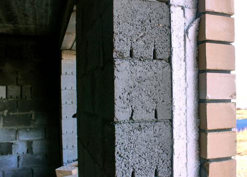 стена из шлакоблока утеплена и обложена кирпичом