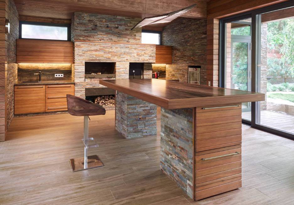 Еще одно преимущество заключается в том, что вовсе неважно, открытая ваша веранда или закрытая. Необходимо лишь позаботиться о прочности пола и износостойкости его покрытия. Начнем с организации барной стойки
