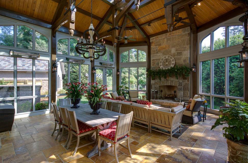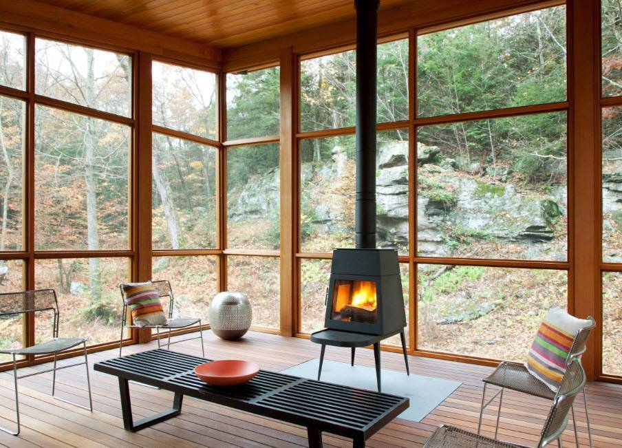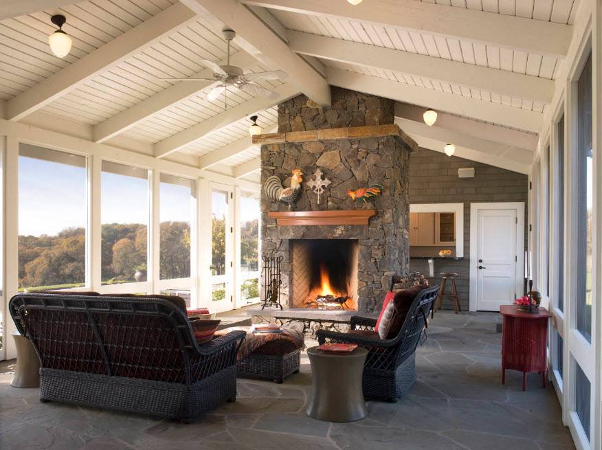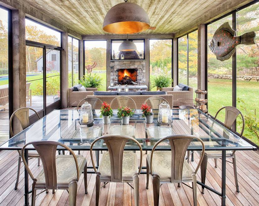 При этом, во многих загородных домах на западе камины принято ставить не в гостиной, а на веранде