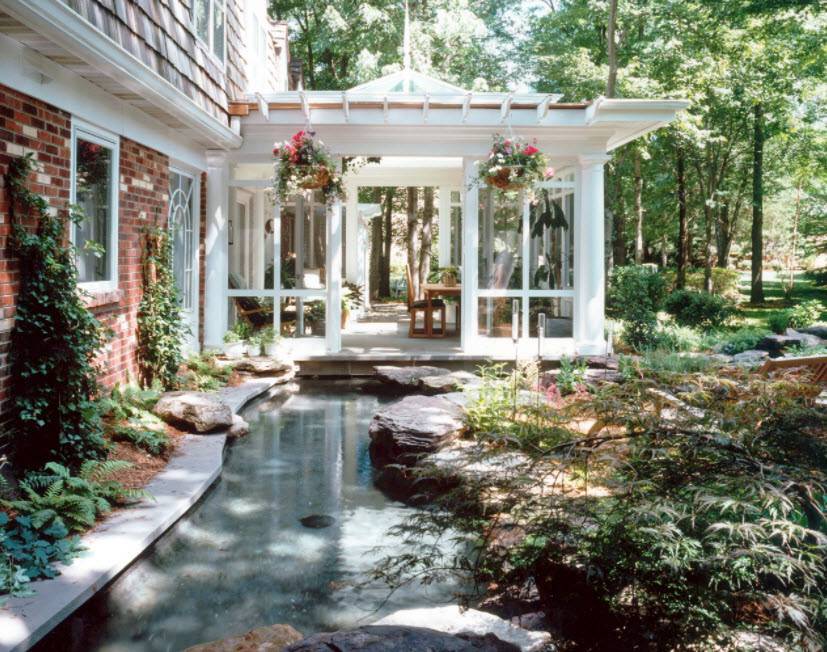 Конструкция каждого сооружения имеет обязательные и «опционные» элементы. Минимальный набор пристроенной к дому террасы состоит из фундамента и настила. Третье обязательное условие — одна общая с домом стена, у которой есть отдельная входная дверь, соединяющая с какой-то комнатой (чаще всего гостиной).