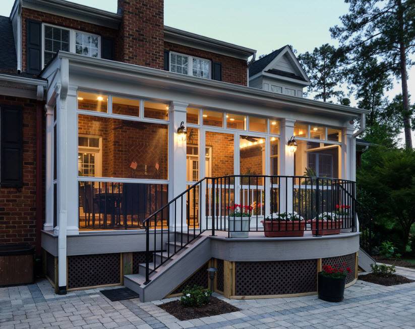 - Летняя веранда может быть открытой или остекленной, выполнять функцию крыльца, полноценного холла, самостоятельного помещения.
