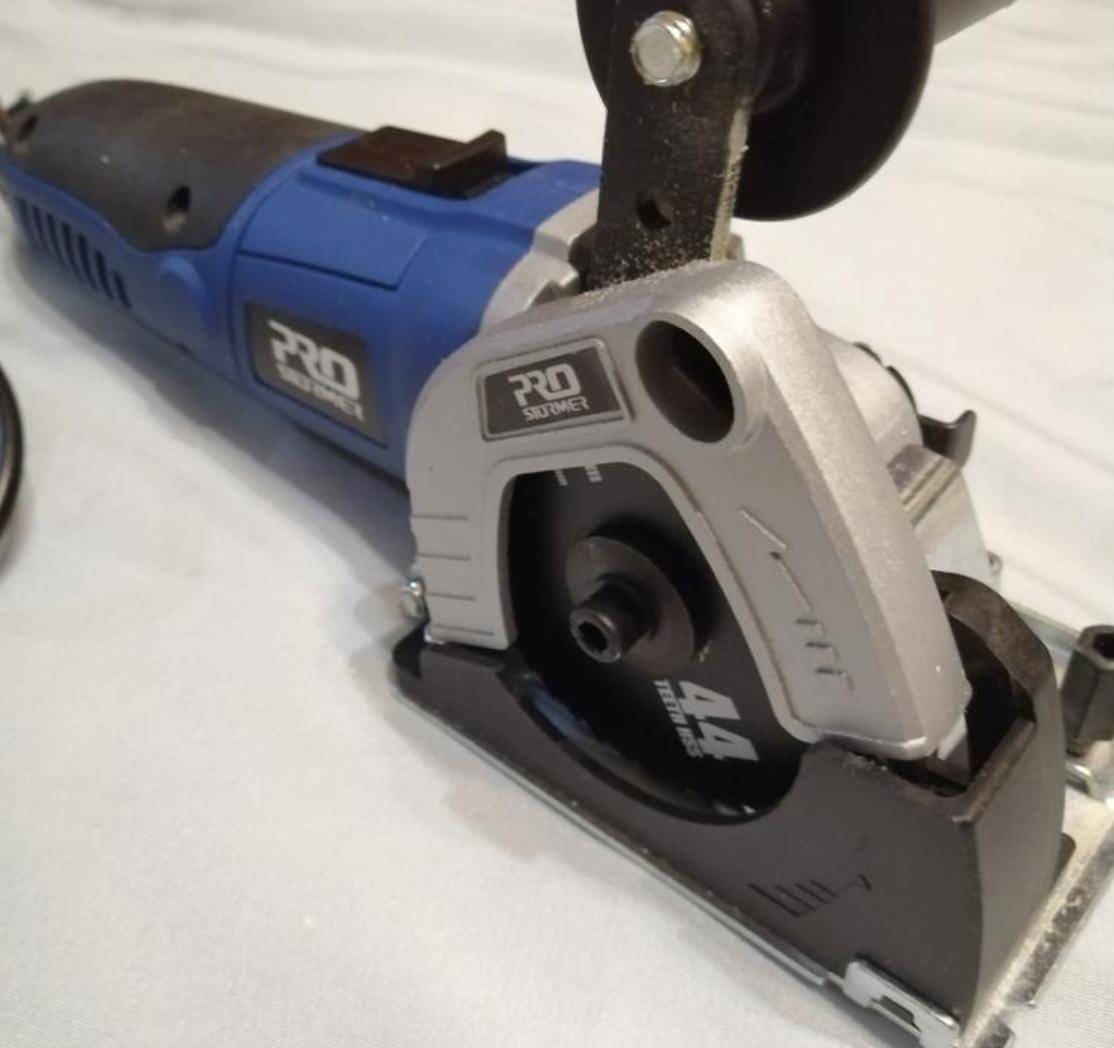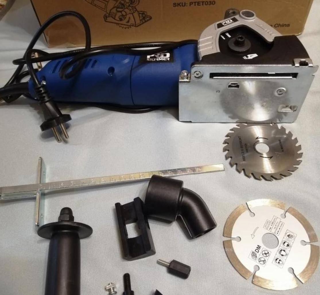 Этот миниатюрный универсальный девайс адресован тем, кто, особо не заморачиваясь, любит что-то соорудить у себя на даче. Довольно серьёзный мотор обладает мощностью 500 Вт. Этот инструмент с глубоким вырезом умеет легко, быстро и качественно распиливать мелкие изделия не только из дерева, но и металла. Есть резак для плитки. Покупать дополнительно лезвия не нужно– идут в комплекте (3 шт).