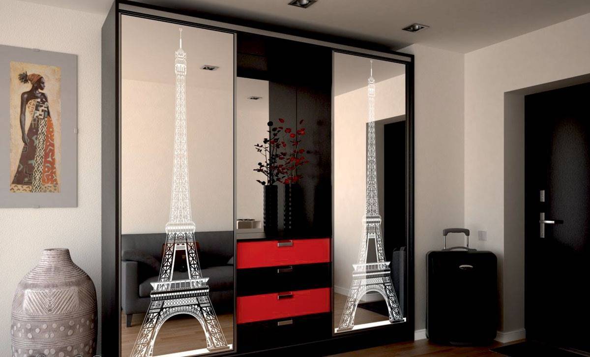 Фотопечать изображения на зеркале шкафа-купе в прихожей.