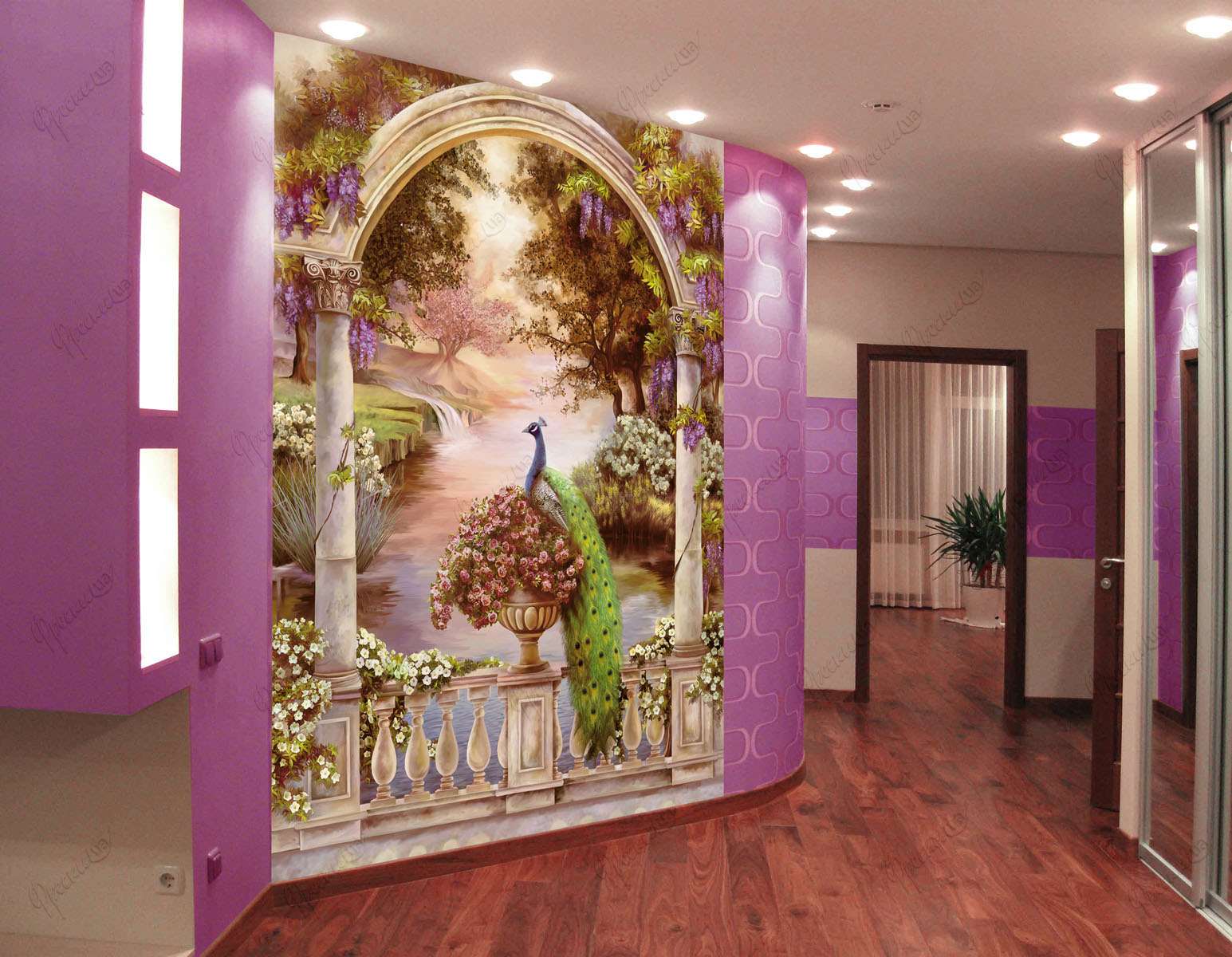 Изображение цветов в прихожей визуально увеличат пространство.
