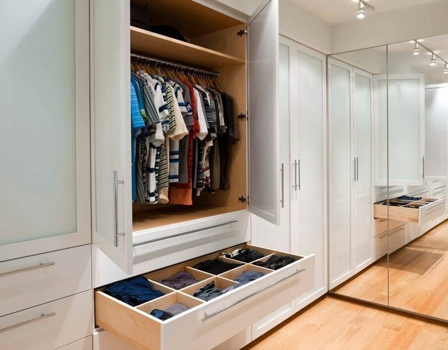 - шкафы распашные можно использовать более рационально, ведь в них нет зон, куда невозможно дотянуться;
