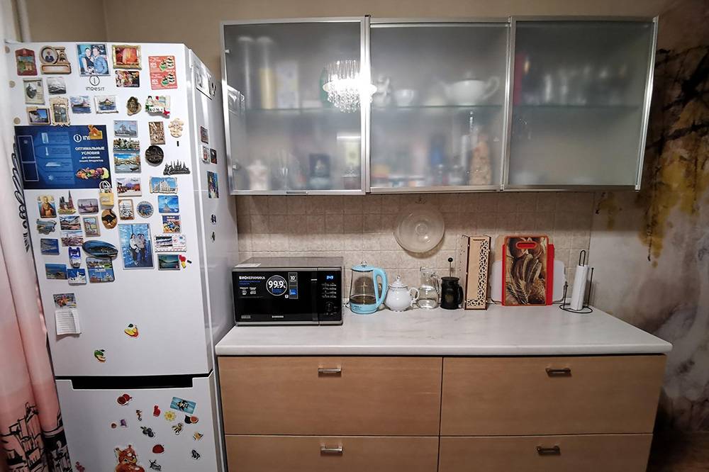 Суть проблемы. Предыдущие владельцы спланировали кухню так, что место для холодильника оказалось в углу рядом с батареей. Когда мы поставили свой холодильник, начались проблемы. При открытии дверца упиралась в кухонный гарнитур и распахивалась не полностью. Так как дверца не открывалась нормально, выдвижные ящики холодильника тоже не вылезали. А еще занавеску от окна при каждом открытии холодильника затаскивало внутрь него как магнитом — видимо, так распределялся поток холодного воздуха.