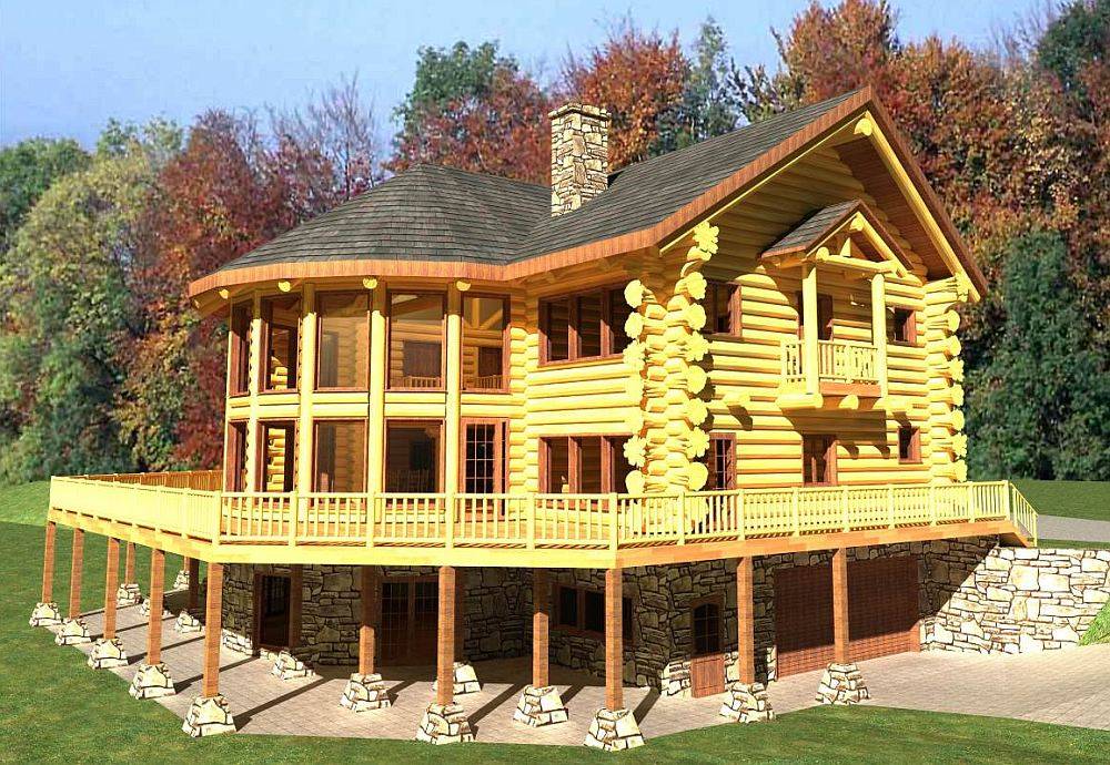 Стойки каркаса можно расставить, сформировав любую фигуру в плане, будь то шестигранник или круг. Консольные выносы бревен можно оформить скульптурной резьбой, подчеркнув индивидуальность и вкус владельца дома.