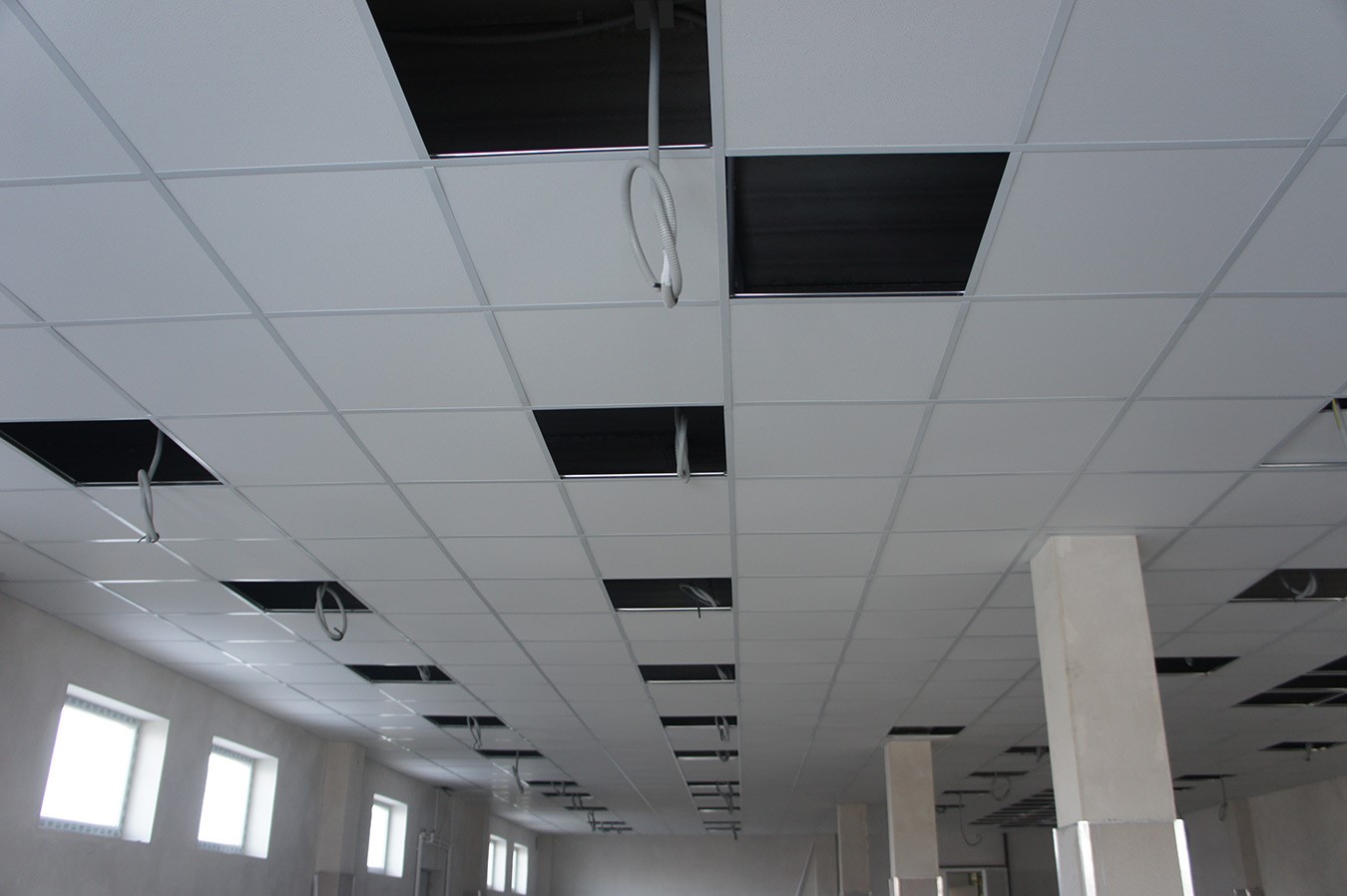 В межпотолочном пространстве легко размещаются вентиляционные и водопроводные трубы, электрические провода, кабели и прочие инженерные коммуникации, что делает такие потолки особенно популярными в офисных помещениях.