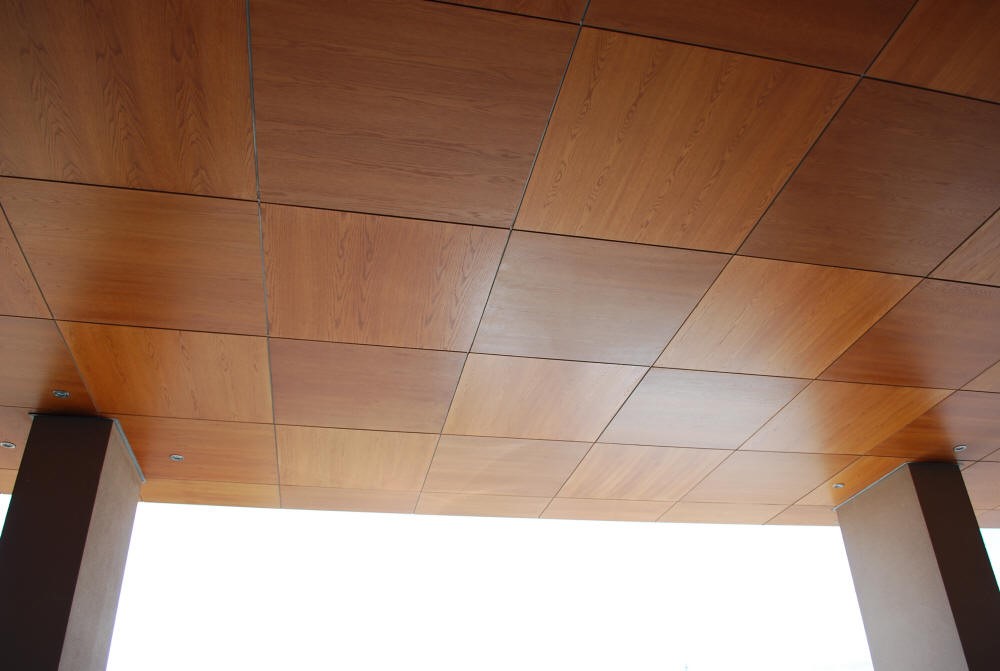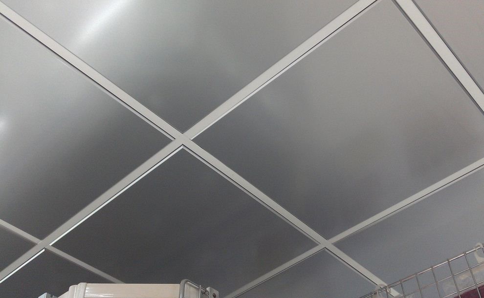 Встречаются потолки из ламинированной фанеры. С ее помощью удается подобрать желаемый цвет, а сами плиты отличаются малым весом. Они не оказывают никакого давления на каркас, а пыль и грязь не прилипают к такой поверхности. Сами квадраты отличаются устойчивостью к влаге, поэтому используются для монтажа в ванных комнатах, на кухне, в медицинских учреждениях или жилых помещениях.